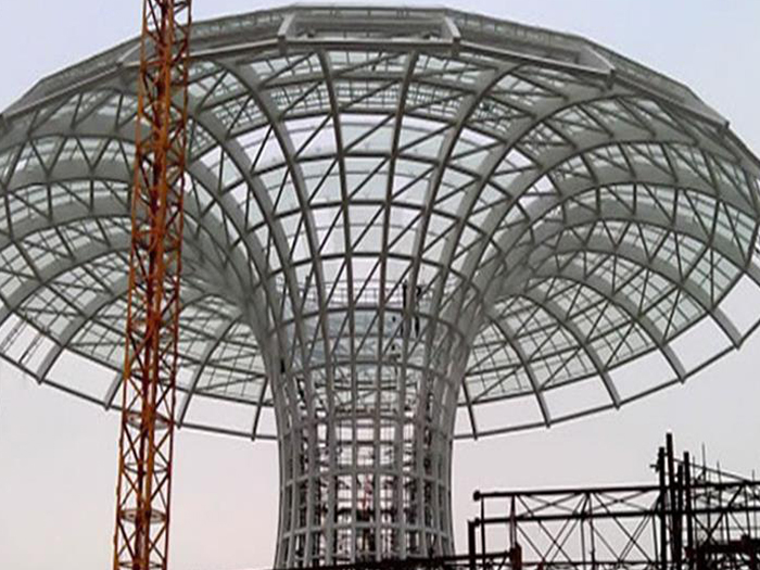 二、球形网架结构因其结构新颖,受力合理,自重轻、用钢量低等优点。如大型体育场馆球形绥芬河螺栓球网架、公共场馆球形网架、电厂绥芬河螺栓球网架、水泥工业球形网架、仓储物流球形网架、绥芬河干煤棚工业球形网架、绥芬河收费站绥芬河加油站球形网架、展览中心、影剧院、商场、航站楼、候车厅、工厂绥芬河车间、仓库、电视塔等球形螺栓球节点网架。国内球形网架结构主要分为:绥芬河焊接球节点网架及螺栓球节点网架两种。螺栓球节点网架其构件工厂内加工量较大,现场安装便捷,适用于现场工期紧,绥芬河施工条件、用电量受制约,网架形状复杂、绥芬河杆件定位困难的异形结构。螺栓球节点球形网架系统基本由绥芬河杆件、螺栓球、支撑支座等组成。按照节点形式可分为交叉绥芬河桁架体系、四角锥体系、三角锥体系等。支撑方式多为固定支座支撑。对于大面积、大跨度及有特殊受力或伸缩要求的网架结构可采用橡胶支座、滑移支座、球铰支座等支撑形式,以满足结构自身的受力稳定、均衡,便于内力释放等设计要求。